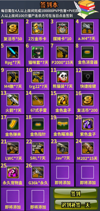 双倍僵尸积分已经开启,荣誉商店签到系统即将推出 服务器宕机补偿将CDK