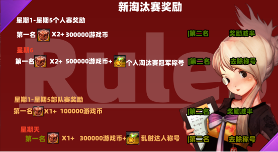 个人淘汰赛周内赛事奖励如下地图(死亡仓库7回合比赛制)