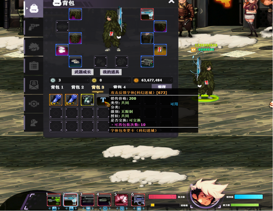 1*新功能介绍:趣味字体 只玩家通过活动或游戏中获得的各种字体道具,携带后进入游戏攻击或受到攻击 会显示具体伤害值,(不同的字体主题会显示不同的字体样式)